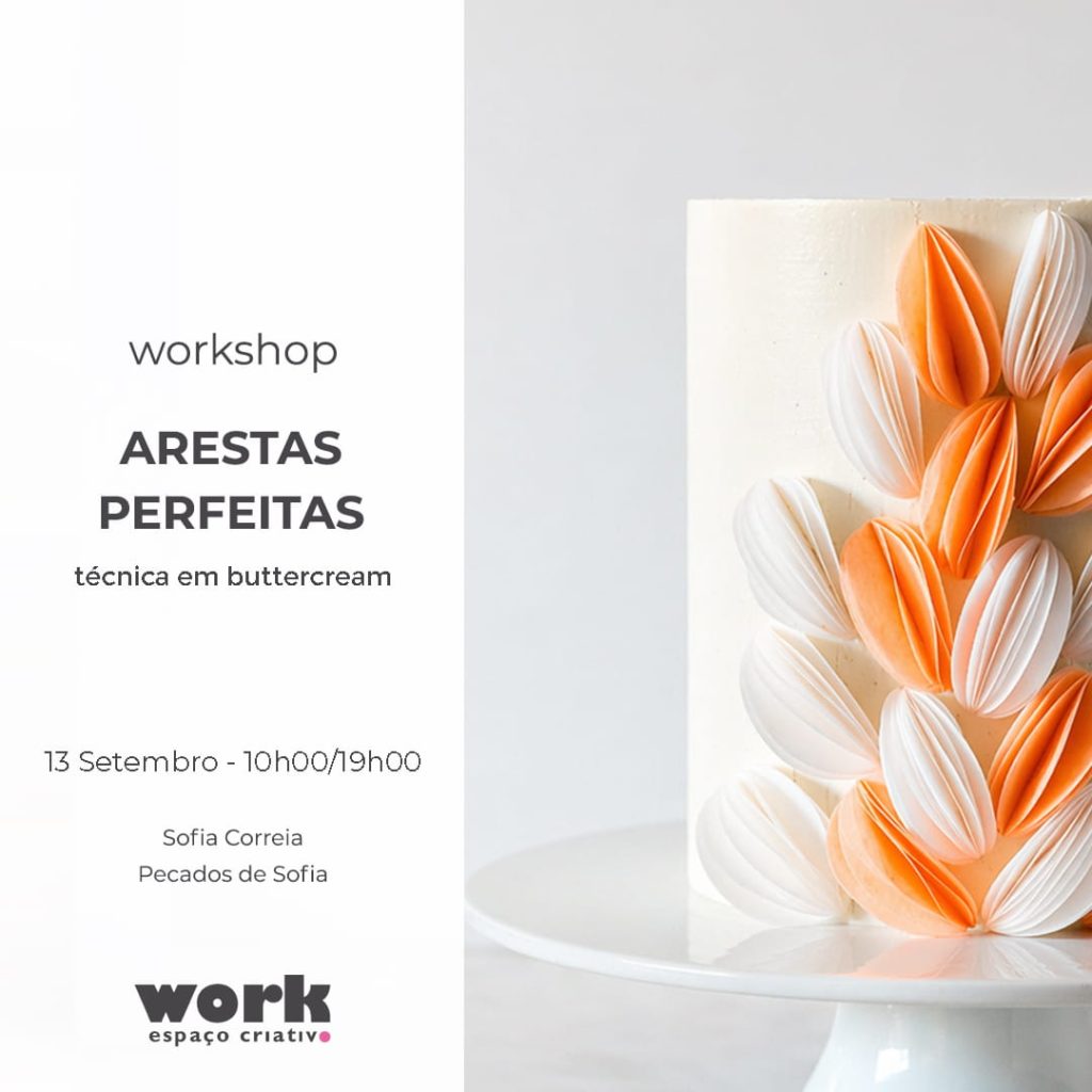 O workshop Arestas Perfeitas, técnica em Buttercream é uma formação prática desenhada para quem pretende dominar a arte de criar acabamentos profissionais em bolos